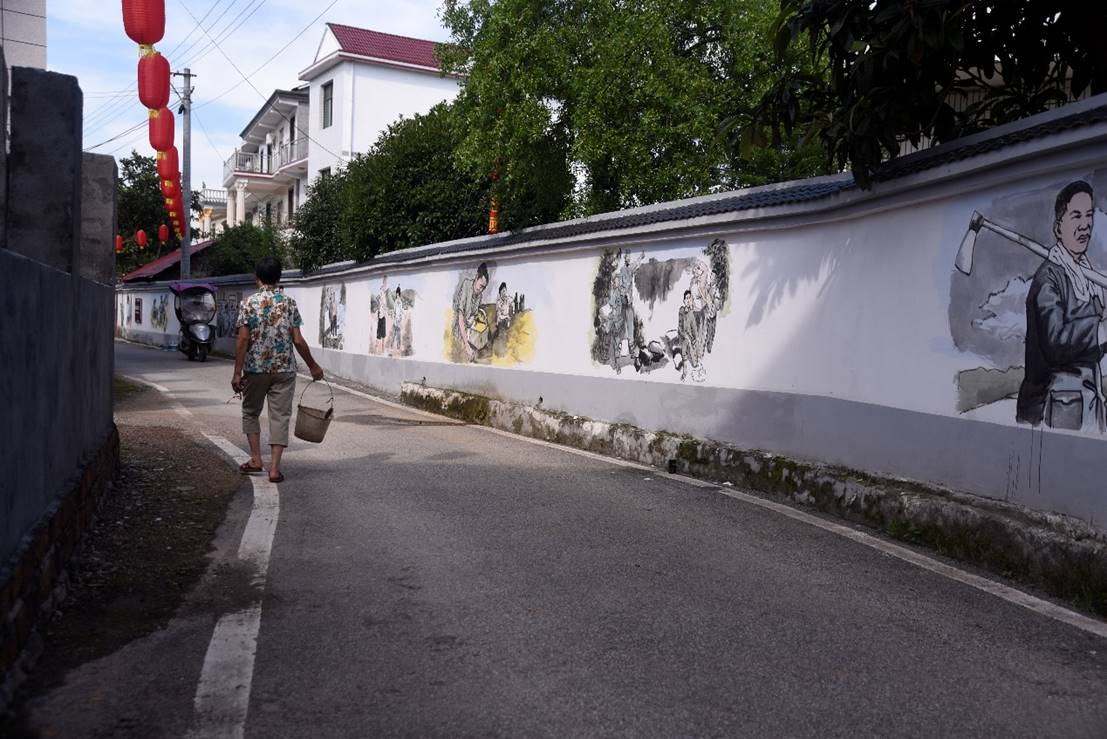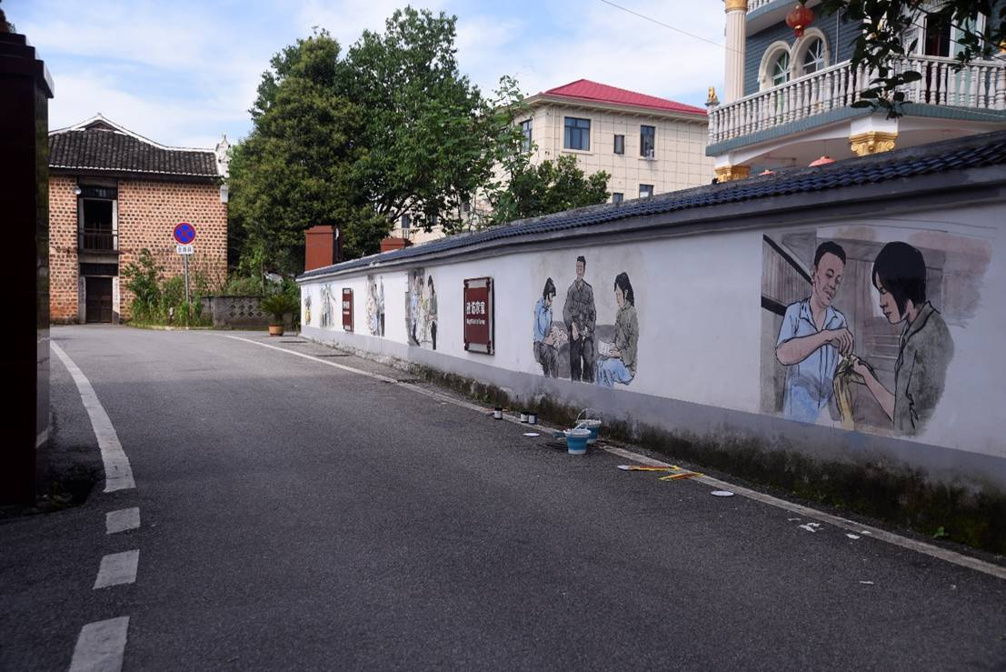 此次墙绘创作的内容包括三个部分:甘祖昌将军解甲归田建设家乡的故事场景,沿背村民风民俗纪实,以甘祖昌将军带领村民修路修桥为元素的主题性创作画面,地点分别在甘祖昌干部学院大门口相交的三条街道的围墙、甘祖昌故居后的一条街道以及干部学院行政楼门口的一面大墙。