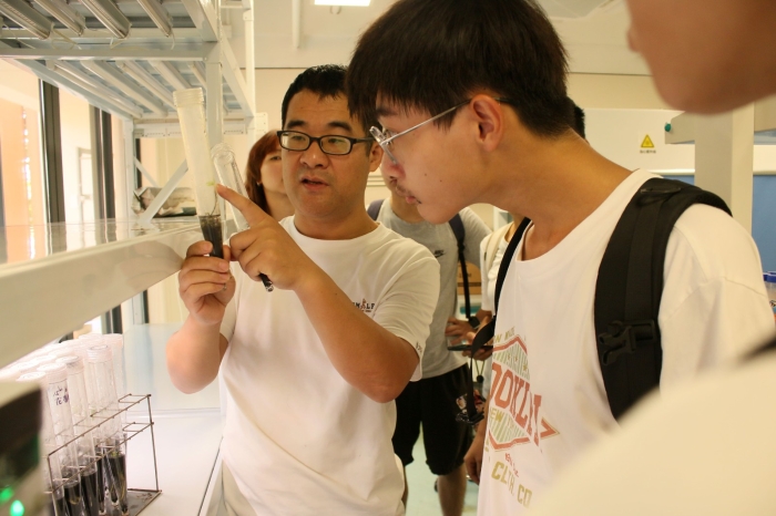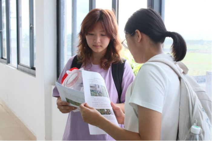 实践团队正倾听带队老师对水蛟基地的介绍 林依摄
