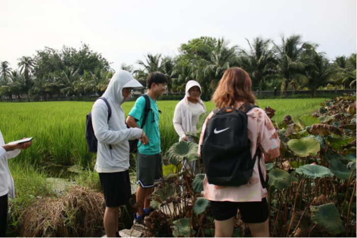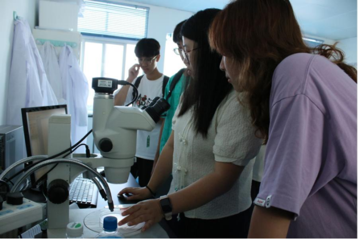 下一站,热科院崖州基地,实践团队于此学习病虫害的理论知识和实验操作。负责人首先向实践团队介绍豇豆常见虫害,如蓟马、斑潜蝇、烟粉虱和豆蚜等。随后,团队成员前往蓟马培养室,这里,培养盒内放置新鲜豆角作为蓟马的培养基。此外,蓟马培养室中采用了一种特制的培养盒,其侧面巧妙地覆盖了极细的纱网,既确保了蓟马无法逃脱,又保障了内部空气流通,有效防止水珠凝结和豇豆发霉。然后,负责人带领我们用显微镜观察蓟马,让团队成员认识了蓟马的形态特征。紧接着,负责人展示了豇豆常见害虫的天敌图片,如蚜虫的天敌食蚜蝇,以及蓟马的天敌大眼长蝽、捕食螨等。最后,实践团队跟随课题组进行了蓟马成虫生测实验,并初步掌握了实验的基本过程和基本思路。