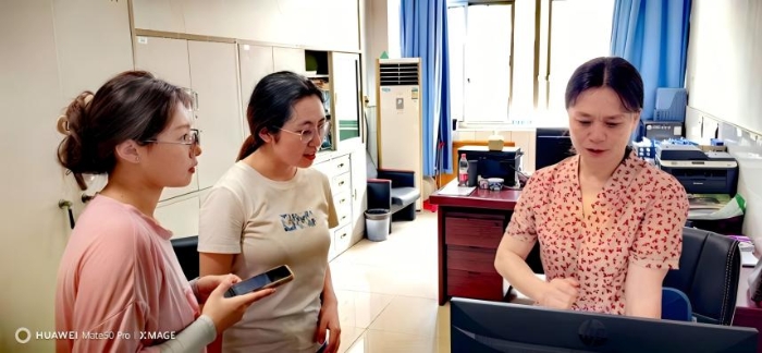 实践队员在重庆文理学院与代老师交流(武汉大学 范铂祥 摄)