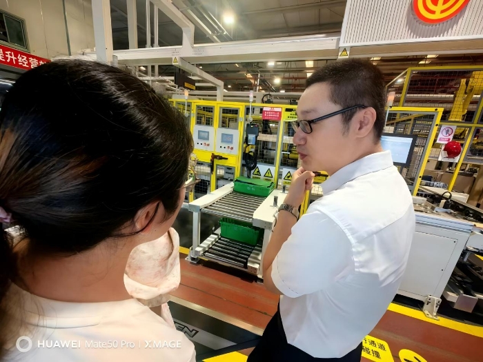 随后,实践队员参观了该公司半自动化生产线,进一步感受现代工业制造的高效运作和先进技术的应用。机械臂的灵活操作、自动化装配线的高效率,与传统的手工操作相比,不仅提升了生产效率,还大大减少了人力成本,同时保证了产品质量的稳定性和一致性。