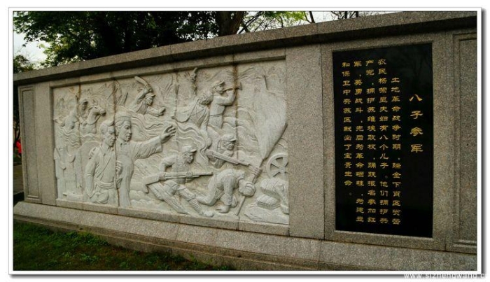 1931年11月苏维埃临时中央政府在叶坪成立的第二天,杨荣显高高兴兴地带着两个大儿子来到参军报名处,替两个儿子整了整衣领,正要回去,突然转身,严肃地对两个儿子说:“儿啊,跟着红军好好干,你们的孩子我会照看好。”不幸的是,不到三个月,两个儿子便战死沙场。噩耗传来,年过七旬的杨荣显老人一句话也没说,转身便进了屋,隔窗看到儿媳怀中嗷嗷待哺的孙儿,老人心如刀割。