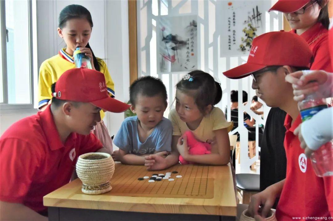 “未见其人,先闻其声”是对志愿者们与小朋友第一次见面的最佳诠释,小朋友们带着笑声成群结队地走了进来,志愿者们领着他们去到相应位置。一部分志愿者们与小朋友在书角一起遨游在书籍的海洋,一起学习知识,并向通过小故事引导他们,普及宣传册上的知识;一部分志愿者们成功“打进”小朋友的内部,与小朋友愉快地玩游戏,并把学院同学捐赠的礼物作为奖品送给小朋友;另一边,志愿者们教小朋友练字,和小朋友一起下棋。刹那间,一片欢声笑语充满整个中心。