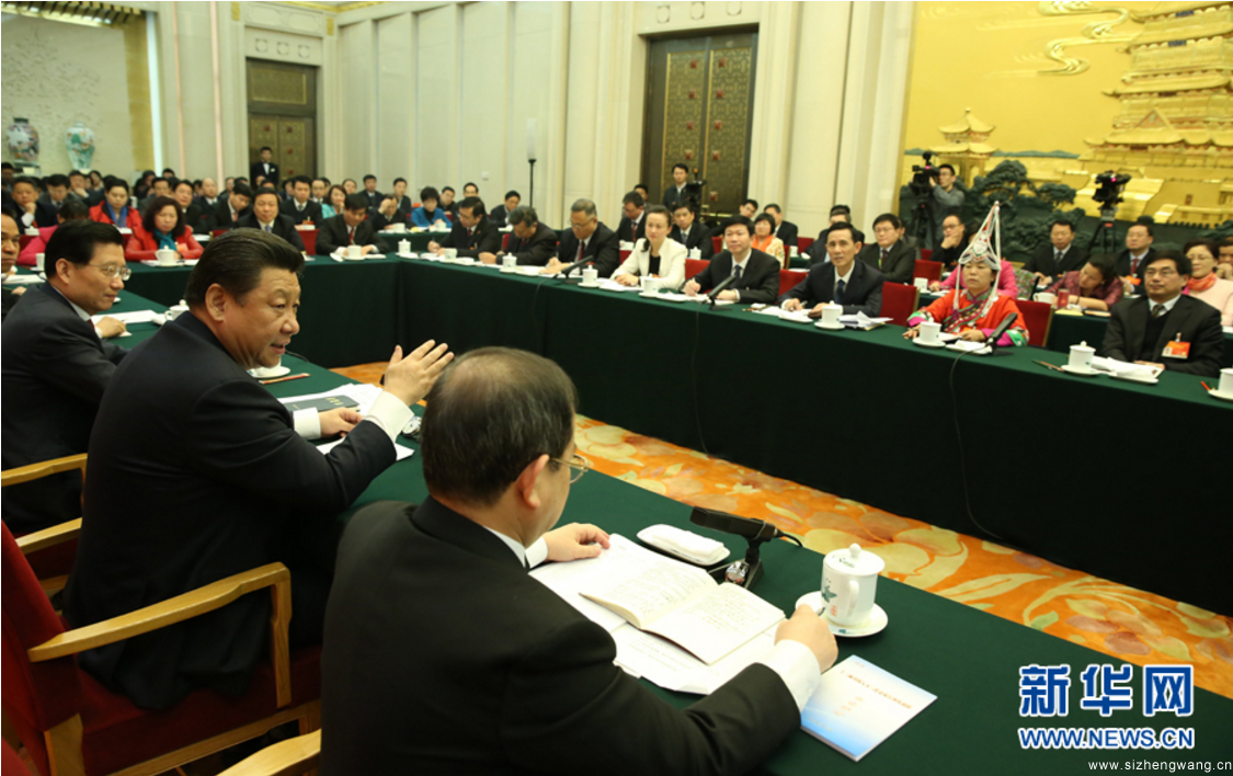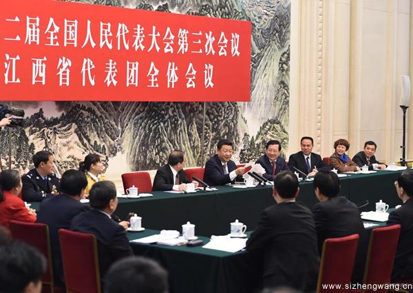 3月6日,中共中央总书记、国家主席、中央军委主席习近平参加十二届全国人大三次会议江西代表团的审议。 新华社记者兰红光摄