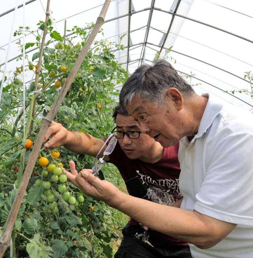 赵亚夫在大棚里查看番茄长势。受访者供图