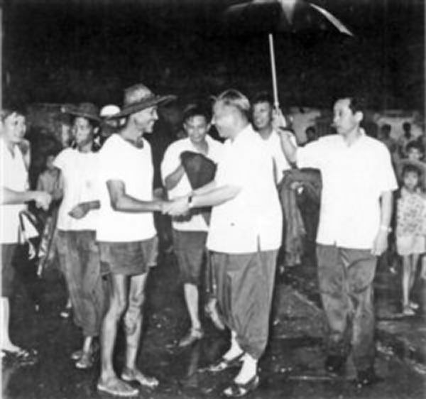 在广东工作期间,习仲勋考察海康县时与群众交谈。