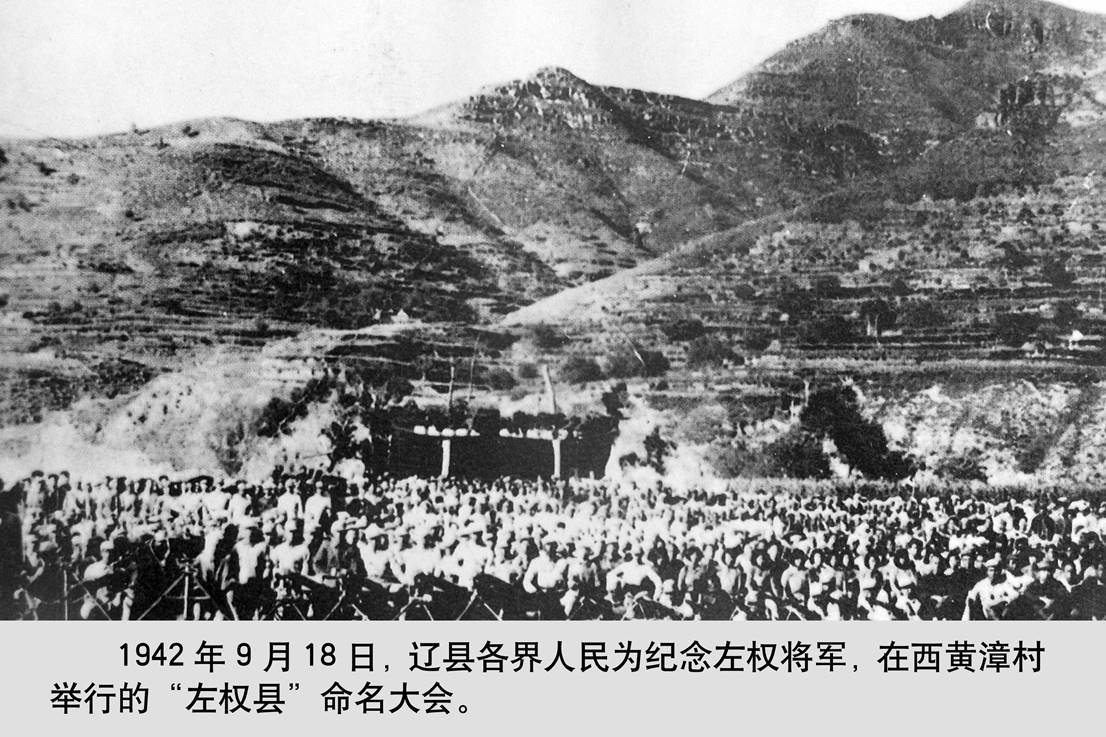 太行山上有个左权县,原本叫辽县,在抗日战争中,一位名叫左权的八路军将领牺牲在这里,为了纪念这位将军,当地万余群众一致请求, 晋冀鲁豫边区政府批准,改名左权县。