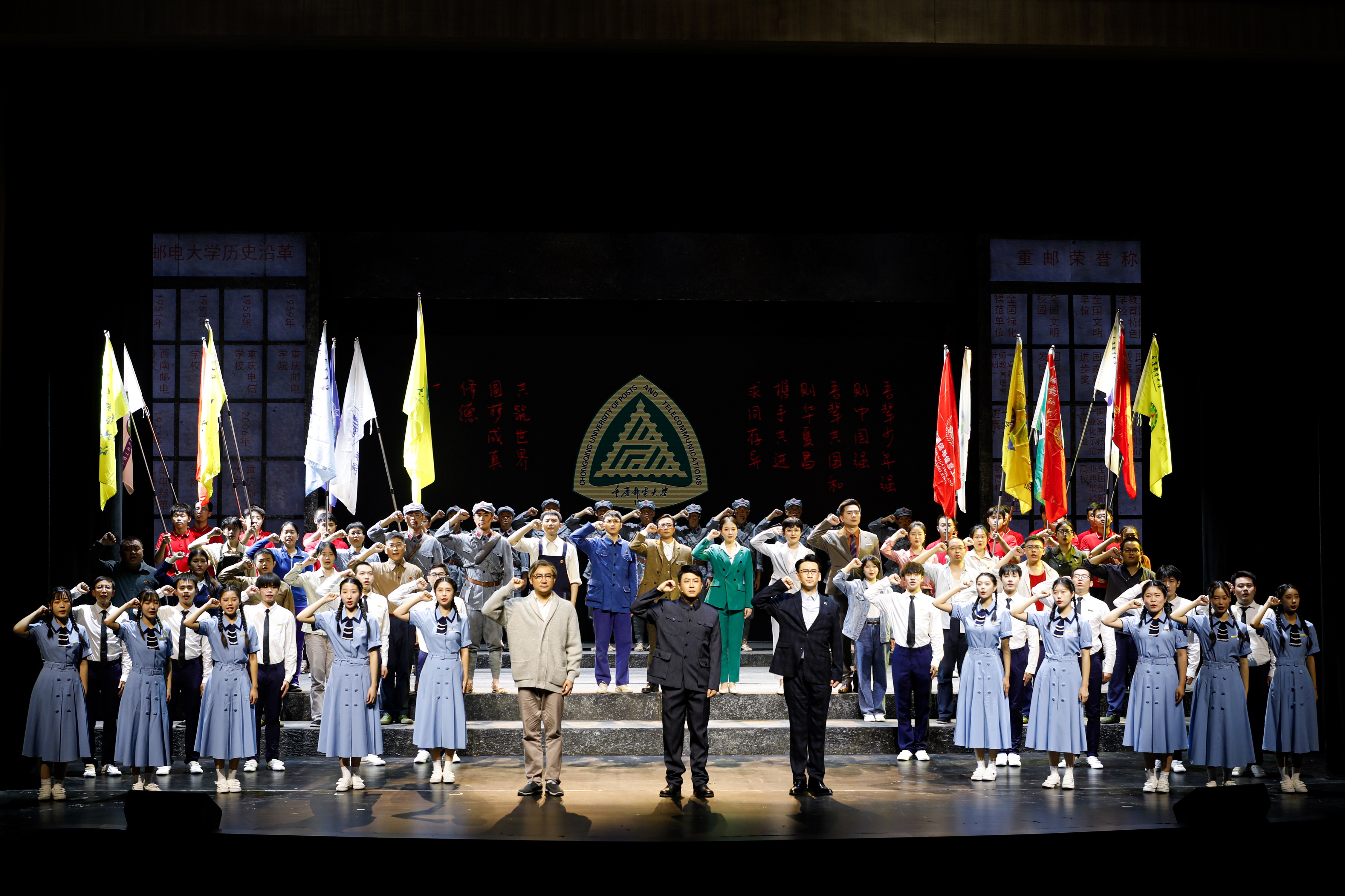 原创话剧《红色长波》作为重庆邮电大学廉洁文化教育的生动载体,以校史为镜,彰显廉洁品格的传承力量。话剧展现了以我校首任党委书记、院长、老红军郭长波同志为代表的一代代重邮人始终牢记振兴民族邮电通信事业使命,坚定红色信仰,铭记育人职责,艰苦创业,推动重庆邮电大学从无到有、从小变大、从弱变强的历程,蕴含着百折不挠、艰苦奋斗、团结奉献、敢为人先的意志品格和爱生如子的教育情怀,是重邮精神的真实写照。2020年至今《红色长波》话剧先后在重邮展演 30 场,我校师生、校友、社会各界人士累计观看近30000人次。