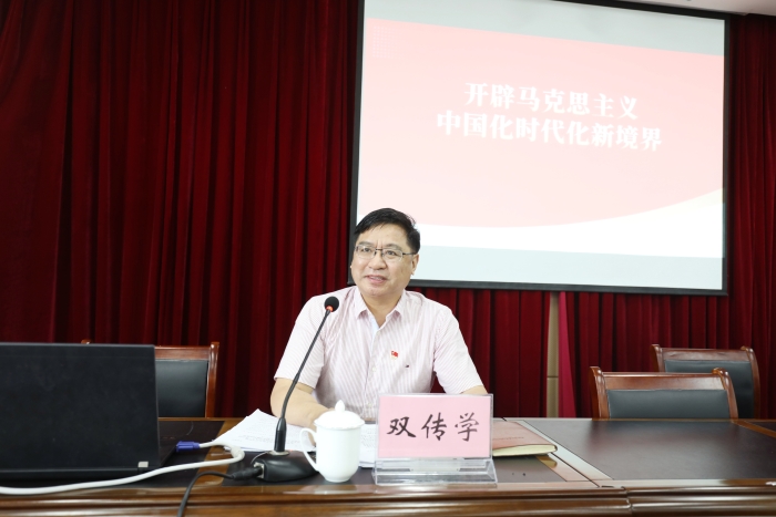 辅导报告会上,双传学教授以《开辟马克思主义中国化时代化新境界》为题,围绕当代马克思主义中国化时代化的重大成就;当代中国马克思主义丰富发展的深刻内涵;当代中国马克思主义鲜明的理论品质;学好用好习近平新时代中国特色社会主义思想等四个方面深刻阐述了习近平新时代中国特色社会主义思想的理论逻辑、实践逻辑和历史逻辑,突出强调了深入学习把握习近平新时代中国特色社会主义思想的世界观和方法论,运用好贯穿其中的立场观点方法,自觉做到“六个必须坚持”的重大意义。