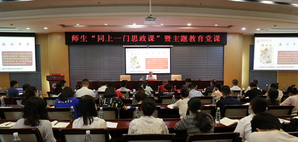 在全国上下学习贯彻习近平新时代中国特色社会主义思想主题教育走深走实之际,为进一步深化思想政治理论课改革创新,扎实推进习近平新时代中国特色社会主义思想和党的二十大精神进教材、进课堂、进头脑,6月12日下午在中原楼7楼会议室,校长、党委副书记杨灿明以“深入学习贯彻习近平总书记关于加强党的政治建设和提高干部政治能力的重要论述”为题讲授了主题教育专题党课,党办、校办,教务部,校友工作与社会合作部,审计部,金融学院,法与经济学院,国际教育学院等单位师生党员代表参加学习。党课由金融学院党委书记汪平主持。