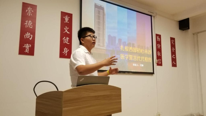 9月10日,宗濂书院2017级党支部的两位代表参加了“爱国奋斗,做西迁精神新传人”微党课竞赛。其中二等奖获得者闫翀讲述了7月15日西安交大一附院首次实施紧急空中转运的案例,他用声情并茂的讲演,将危急时刻医务工作者们无私奉献、爱岗敬业的形象勾勒出来,并表示作为新时代的新青年,更要用心用行动传承好西迁精神,做带有历史印记的新传人。