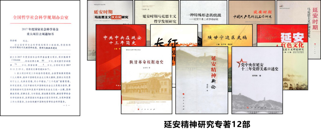 ——组织实施延安精神教育资源建设工程。依托政治学、马克思主义理论学科建设,以国家级项目为支撑,编撰、出版了《延安精神新论》《陕甘宁边区史稿》《延安精神》等专著及教辅资料24部;研发“小红专”—大学生思政教育“指尖上的课堂”(网络微课),获第三届全国“互联网+”大学生创新创业大赛银奖,入选教育部全国高校第一批思想政治工作精品项目;成立“党中央延安十三年虚拟仿真实验中心”,开发建设“延安时期红色文献数字研究平台”,策划《延安时期未刊文献资料收集、整理与数据库建设》获批国家社科基金重大项目,携手北京理工大学开展红色资源育人研究,被列为2019年北京市高等教育本科教学改革重大攻关项目;依托“泽东干部学院”、全国高校思想政治工作队伍培训和研修中心等教育平台,为来自全国各地的近20万名青年和干部开展了丰富多彩的延安精神教育活动,把红色教育培训效应有效反哺、覆盖到人才培养全过程,为开展延安精神教育提供了优质供给和资源保障。