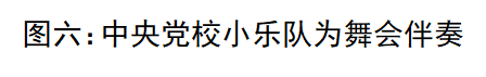 舞会的乐队是爱好音乐的人员自发组织起来的,只有胡琴、笛子、手风琴和锣鼓几件简单的乐器。尽管奏出的音乐不那么动听迷人,但是,只要锣鼓敲打起来,随着伴奏的音乐,舞场就活跃起来,大家有说有笑,有唱有跳,喜气洋洋。特别是每逢毛泽东等中央领导同志参加时,气氛更加热烈,非常吸引人。尽管那时是抗战最艰难的时期,但是毛泽东、朱德等领导人依旧能够与军民同乐,他们那各具特色的舞姿表现出革命家不同的气度风范。