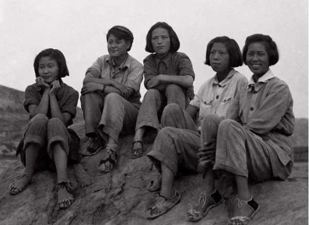毛泽东曾说延安的舞会是 “草鞋舞 ”,这是因为当时条件艰苦,在那些踏着黄土地的舞步中,仅有屈指可数的几双自苏联或重庆穿来的皮鞋,其他全部是布鞋、胶底鞋或草鞋。住窑洞,穿草鞋,是当时参加革命的标志。军人们常常自己打草鞋,女同志也多半自己做凉鞋。用不同颜色的布条,编成彩色带子,钉在旧鞋底上,就变成各种式样新巧的凉鞋,爱美的女同志在草鞋或凉鞋上缀上一对跳跃的绒线红球,就成了舞场上的时髦。