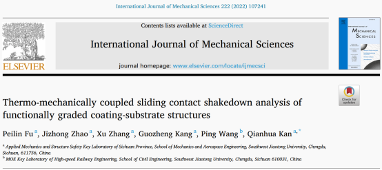 交大阚前华教授团队发表功能梯度材料热力耦合接触安定研究成果