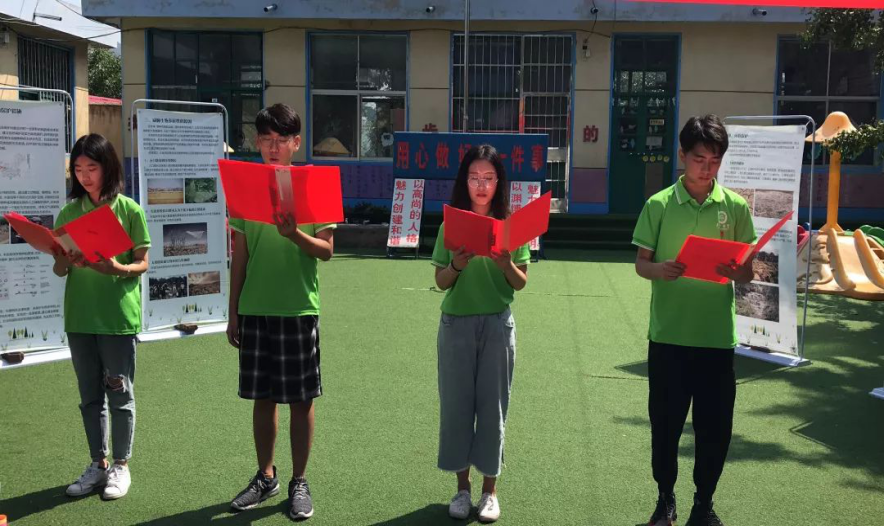 为响应习近平总书记“建设美丽中国”的号召,助力国家乡村振兴战略,同时号召广大青年团员不忘誓言、不辱使命,在十九大“实施乡村振兴战略、坚持农业农村优先发展”这一理念指导下,2019年7月17日-18日,临沂大学资源环境学院2019年暑期社会实践团队“绿动沂蒙——‘第一书记’扶贫驻扎村环保科普团”,走进了临沂大学选派“第一书记”徐树建教授所在的扶贫驻扎村——平邑县地方镇闸口村,举行了“绿动沂蒙•美丽乡村我先行”主题团日活动。