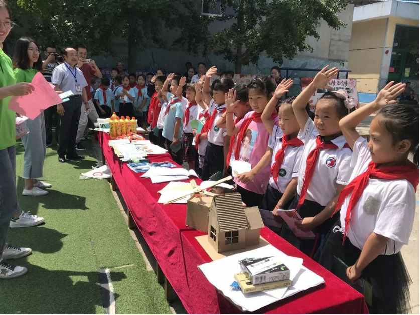 7月18日上午,实践团队来到闸口村完小,与该校全体师生和家长代表共同学习新时代生态文明建设思想和环保知识。活动中,全体人员同唱国歌,致敬我们伟大的祖国;共青团员重温入团誓词,发自肺腑、铿锵有力,再次唤起当初入团的初心和决心,更加明晰了新时代共青团员肩上所担负的责任和使命;实践队员高声朗诵的《党旗颂》更是将现场氛围带上高潮,激发了同学们作为共青团员的光荣感和使命感,鼓励同学勇担时代重任;环保知识小课堂、环保知识有奖竞答,让整个活动气氛热烈,现场活泼而又不失庄严,激发了家长和学生的环保意识。
