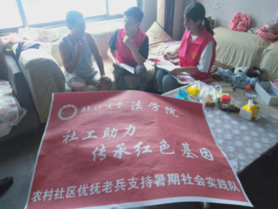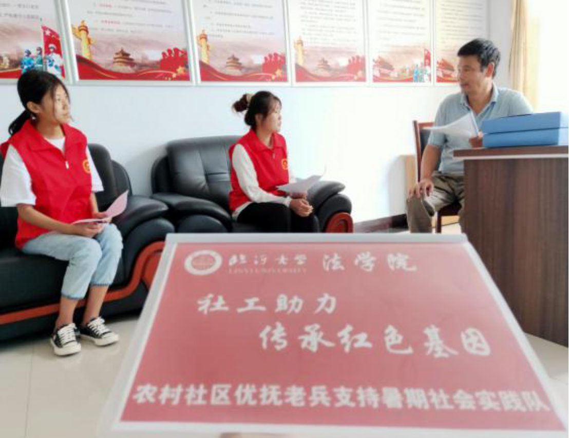 为响应临沂大学“打我融入小我,青春献给祖国”大学生三下乡暑期社会实践的号召,弘扬沂蒙精神,传承红色基因。2020年8月10日—8月16日,临沂大学法学院“社工助力·传承红色基因”农村社区优抚老兵支持暑期社会实践队前往临沂市兰山区枣园镇郑庄村开展暑期社会实践活动,本次暑期社会实践活动以郑庄村60岁以上优抚老兵为主要服务对象,重点关注困境优抚老兵,以前期调研+精细服务+延伸服务的服务模式,为老兵提供各类服务,提高老兵精神生活和物质生活质量,引导老兵发挥余热,为村内青少年开展红色教育,传承红色基因。