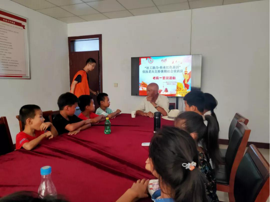 红色教育要从娃娃抓起。为了更好的弘扬老兵精神,传承红色基因,我们从全村招募到15名青少年,开展老兵一堂课活动,邀请退伍老兵走进课堂与青少年面对面交流沟通,为青少年讲解参军入伍的亲身经历,讲述身边的红色故事。青少年们积极性很高,向老兵提问自己的疑问,比如部队里有炮弹吗?网络游戏里的枪在部队里也有吗?......,看到孩子们提出的如此“可爱”的问题,我们也深刻意识到传承红色基因是多么的重要。