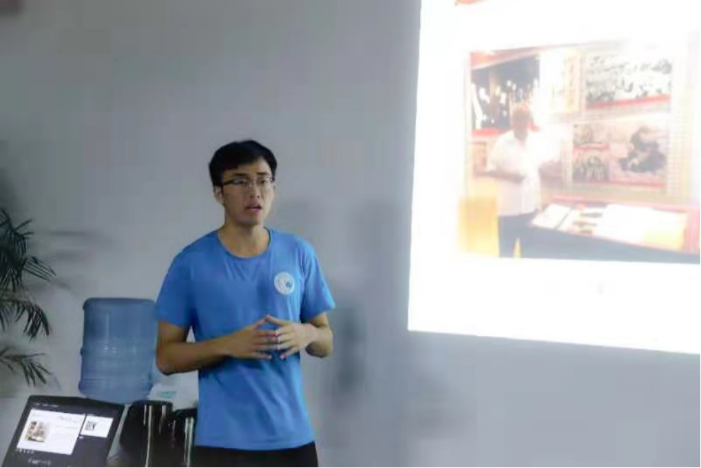 7月19日晚,沂蒙红色文化社会实践研修班中期汇报会在传媒学院218教室举行。汇报会上,“寻梦琅琊”、“拳拳赤子在沂蒙”、“沂水红风”三个小组的同学先后针对各自选题展开汇报,梳理了各小组本次调研的过程和现已取得的阶段性成果。“寻梦琅琊”小组以“沂蒙精神在新时代的传播”为视角对调研成果进行了总结汇报,“拳拳赤子在沂蒙”小组则是以“沂蒙红色文化传播之女性形象解析”的角度展开了论述,最后“沂水红风”小组通过“红色文化宣扬与党性教育有机结合”这一方向对课题进行了汇报总结。三个小组还以视频的形式向在座的师生们展现了这一段时间在实践中的经历与成果,他们立足本组实践调查的主题,向在座的各位师生做了精彩的汇报总结。