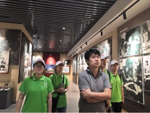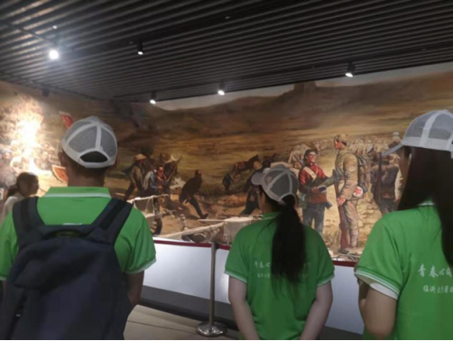 沂蒙,曾被誉为山东的“小延安”,抗日战争和解放战争时期,沂蒙根据地420万人口中,21.4万人参军参战,120万人次拥军支前,10.5万名革命烈士献出了宝贵生命。时值暑假,实践团来到孟良崮烈士陵园,开展“缅怀革命先烈 传承沂蒙精神”主题团日活动。由陵园大门经长通道循石级而上,同学们怀着崇敬的心情,走进烈士墓地。墓地正中是粟裕将军骨灰撒放处,周围是中国共产党山东省早期领导人刘晓浦、刘一梦烈士及陈岩克烈士和其不足满月的女儿在此长眠。每一方纪念碑,每一座烈士墓,每一段英雄故事都是永不熄灭的精神火炬,大家向烈士墓碑深深三鞠躬,献上鲜花对英雄致以深切的缅怀。随后,在孟良崮战役纪念馆,实践团成员用心聆听讲解员讲述的战役经过、烈士事迹以及全民支前的历史,大家驻足在一幅幅珍贵的历史照片前,瞻仰着一件件珍贵的历史文物,感受着孟良崮战役浴血奋战的历程。