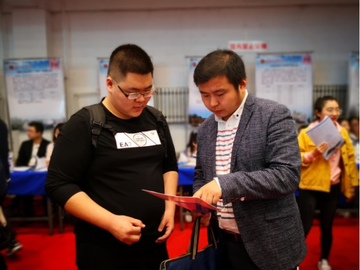 2018年,在吉林省医药专业大学生就业洽谈会现场,对学生进行就业指导、就业单位推介