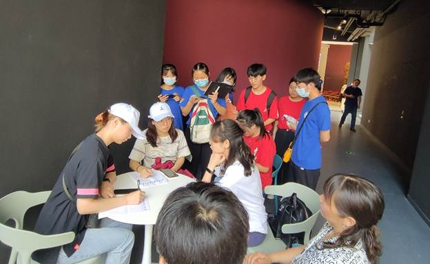 图6:2021年7月3日,董研会暑期社会实践队于中原解放纪念馆同参观人员交流