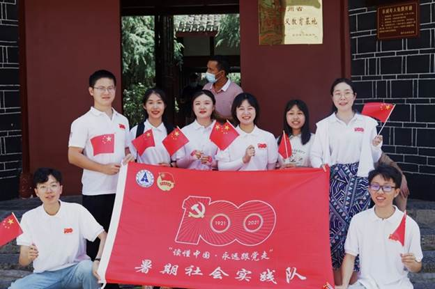 2021年7月11日,“一薪一义”暑期社会实践队在遵义会议期间红军总政治部旧址前合影留念