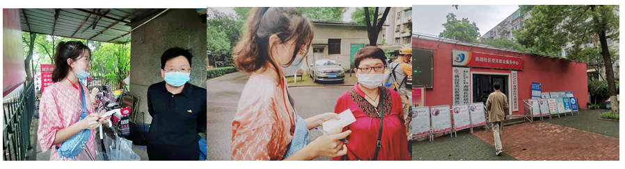 首先团队成员深入社区。由于缺乏预判和经验,成员们随机采访社区居民并做记录时被社区治安大队长制止,采访中断。经协商后重新商定时间,次日在社区工作人员的陪同下顺利完成了采访。