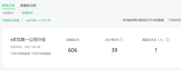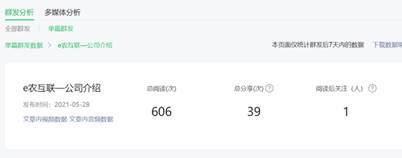 团队创建“e农互联”公众号,以乡村推广为主要内容定期发布。浏览量过千。