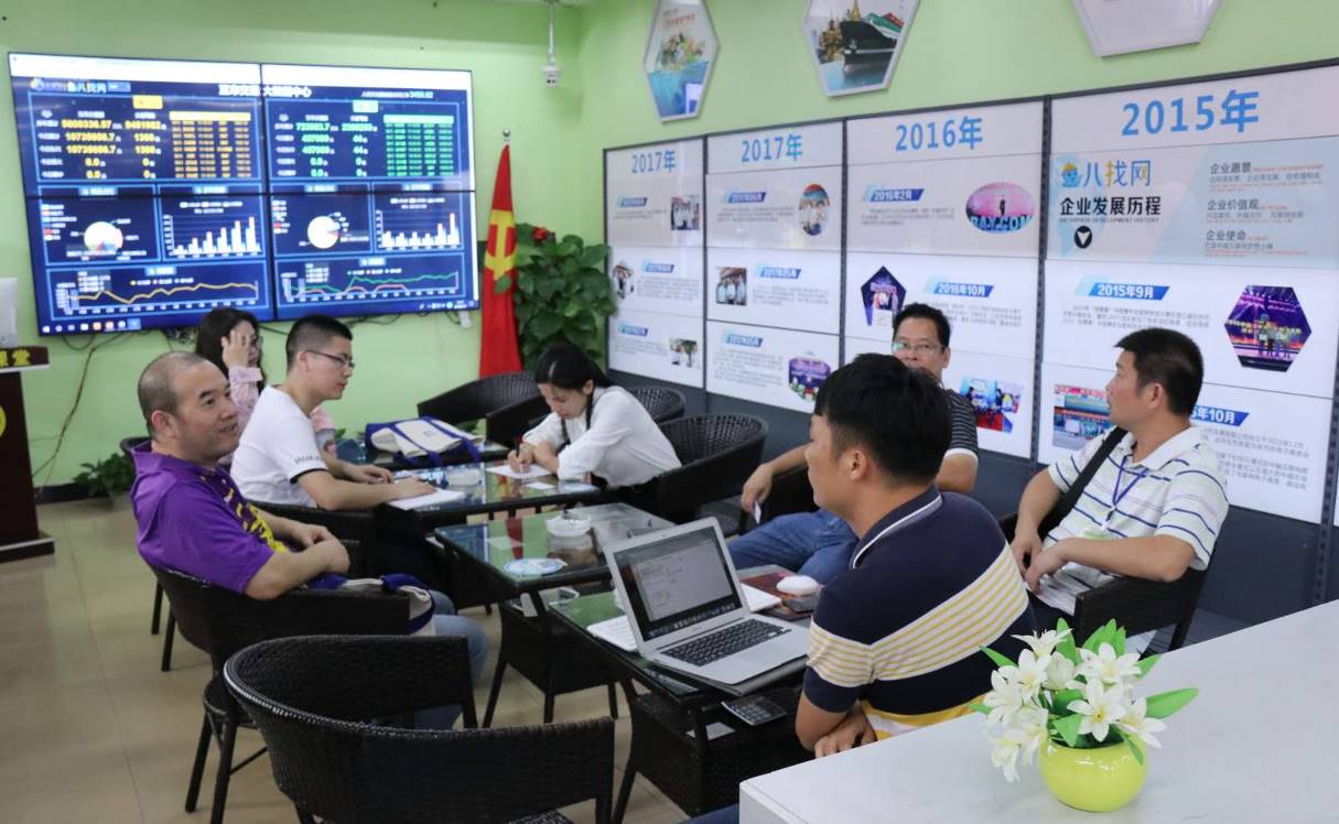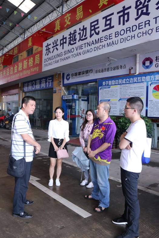 边海之城,国门东兴。“双基地”建设广西分队一行来到东兴中越边境,参观海关口岸,调研东兴边民互市贸易区。在边民互市贸易区内,东兴市贸易局负责同志为“双基地”建设广西分队详细介绍了边民互市贸易政策和监管措施;当地提供边民互市贸易网络平台的八找网公司总经理为“双基地”建设广西分队详细介绍东兴市边民互市贸易的规模、八找网平台的业务模型及其特色。“双基地”建设广西分队仔细询问了企业关于营商环境、财税政策实施状况等方面的问题。