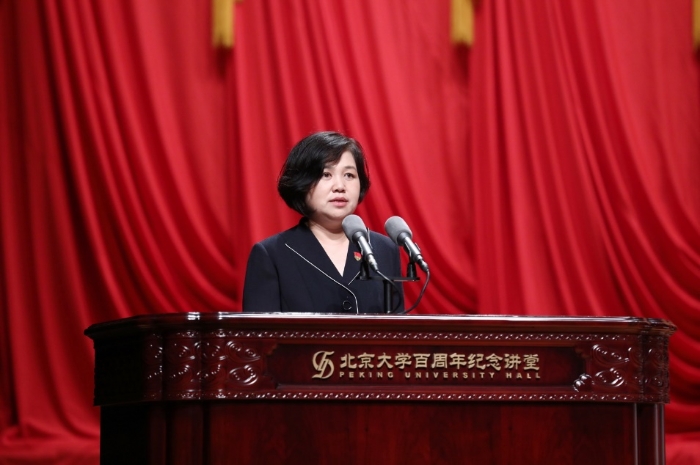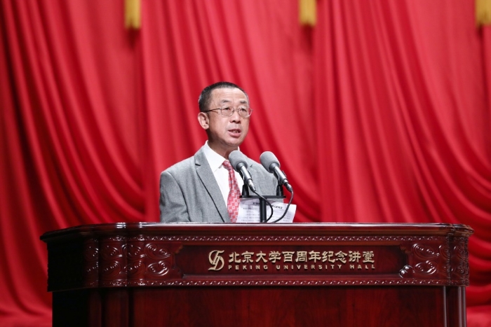 2021年7月2日,北京大学学习习近平总书记在庆祝中国共产党成立100周年大会上的重要讲话精神暨“两优一先”表彰大会在百周年纪念讲堂和线上同步召开。北京大学党委书记邱水平,党委副书记、校长郝平等校领导班子成员,教育部高校党建工作联络员韩景阳,受表彰的“两优一先”获奖者代表,新发展党员代表,各二级党组织、院系和职能部门负责人现场参会。全校各单位党员、干部线上同步参会。会议由郝平主持。