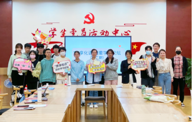 学院以一站式社区为基地,以“128”计划为抓手,将思政课堂开在社区中,将育人力量请进社区来,让思政育人春风化雨。邀请学院党委书记为本科生与研究生毕业生党员上最后一堂党课、讲授调查研究专题党课暨学生骨干座谈会。组建优秀教师班主任宣讲团,彰显“化学强国”使命担当。开展九一八爱国主题宣讲活动,组织党史知识竞赛 、红色观影活动、党员寝室挂牌等。年满18岁新生提交入党申请书比例不断提高。以此为基础,擦亮社区品牌。《“思享化语”朋辈学习论坛,打造红色书香社区》立项2023年“学生社区文化活动”特色项目。