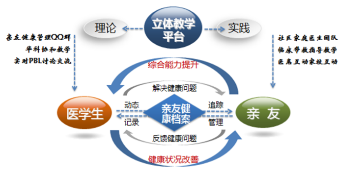 创新以亲友健康问题为临床案例教材的学习。对亲友全生命周期健康管理,巩固了以疾病诊疗为主体的医学专业知识,弥补了传统课程体系中预防保健、健康促进、医学人文等知识的不足,通过第二课堂、隐性课程拓展了学生社会、心理、伦理、经济、法律等多学科知识和综合运用。