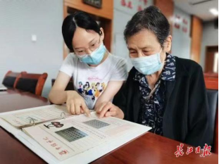 社会学院学生和桂奶奶翻看“幸福手记”手册