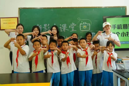 学生在云南临沧蚂蚁堆小学开展“新影”小课堂