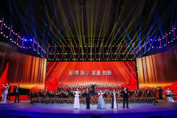 二是名师引领示范文化魅力。探索建立“驻校艺术家”计划,多位著名艺术家走进校园。全国德艺双馨工作者吴碧霞讲述红楼文化,携手我院合唱团、民乐团学子,由国家一级指挥张列执棒,同台演绎“梦系红楼”主题音乐会;“只此青绿”主演孟庆旸现场亲授“青绿腰”等;国家一级指挥阎惠昌讲授《琴台·江城·水之声》,探讨中国传统音乐作品的当代阐释;让广大学子获得情感的愉悦与心灵的感动,形成对历史观、民族观、国家观、文化观的共情效应。