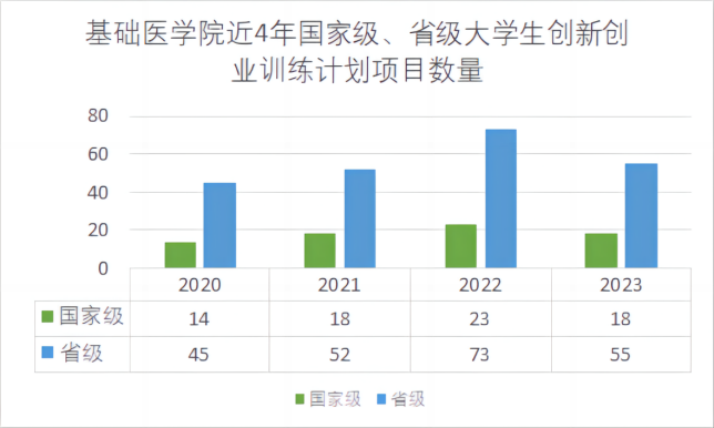 截止2023年12月,初步探索出“思想引领强使命、管理服务助成长、科研训练育潜力、创新创业促发展”的医学生基础科研素养提升新模式。