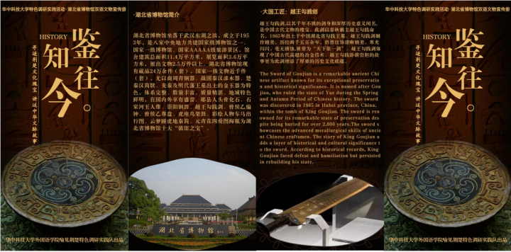 文化故地的参观学习是再现峥嵘岁月、厚植文化底蕴的重要途径之一。武汉作为国家历史文化名城、楚文化的重要发祥地,拥有众多文化故地。学院依托微信公众号发布荆楚文化的科普学习专栏《习荆楚文化,促多语传播》,组织学生前往文化故地或文化博物馆实地参观学习,支部以组织生活为载体,带领大家挖掘黄鹤楼历史文化故事并创作《黄鹤楼传说》中英译本,挖掘梨黄陂路红色基地并翻译成多语种介绍,引导学生更好感受传统文化跨越时空的无限魅力。