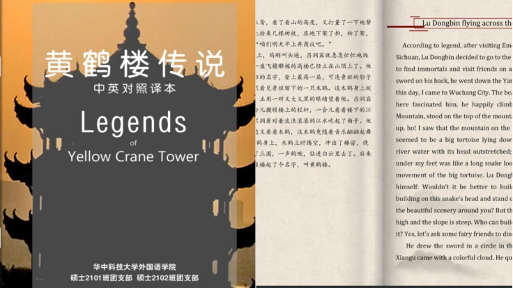 多语讲述江城文化故事。武汉的人文特色景点众多、历史文化积淀深厚。作为武汉古风最浓的景点之一,黄鹤楼素有“天下江山第一楼”“天下绝景”之称。作为江城文化的代表性建筑,结合专业特色,学院带领学生挖掘和翻译黄鹤楼背后的历史文化故事,并创作中英双语版《黄鹤楼传说》故事集,将黄鹤楼的相关传统故事或神话故事翻译成英文,在帮助大家进一步了解黄鹤楼文化的同时,也进一步实现了用世界语言讲述江城文化故事的理想目标。同时,依托荆楚文化资源,开展“习荆楚文化,促多语传播”社会实践、“追‘译’荆楚之源”活动,在实践和锻炼中更好向中国和世界讲好荆楚文化故事。