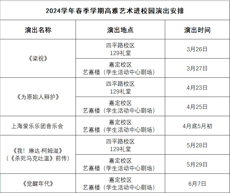 “高雅艺术进校园”系列活动再次启航!我们将邀请众多校外艺术团体为同济师生开展精彩绝伦的表演,那些耳熟能详的经典剧目离你不再遥远,精彩的艺术盛宴在校园中即可享受!