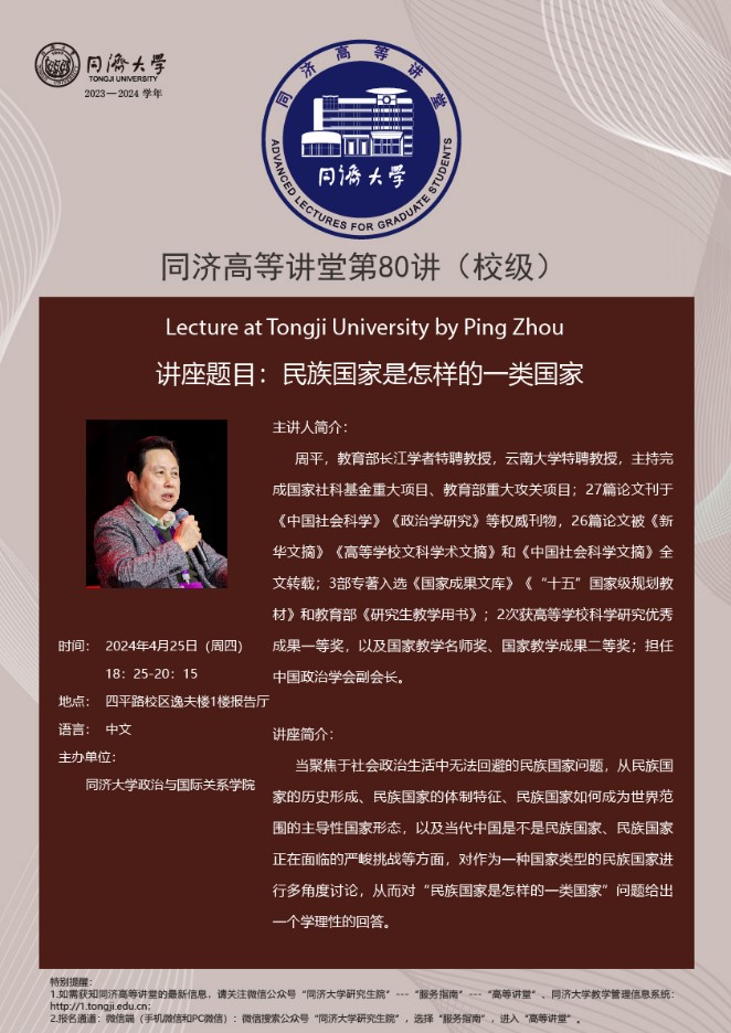 周平,教育部特聘教授,云南大学特聘教授,主持完成国家社科基金重大项目、教育部重大攻关项目;27篇论文刊于《中国社会科学》《政治学研究》等权威刊物;3部专著入选《国家成果文库》《“十五”国家级规划教材》和教育部《研究生教学用书》;2次获高等学校科学研究优秀成果一等奖。