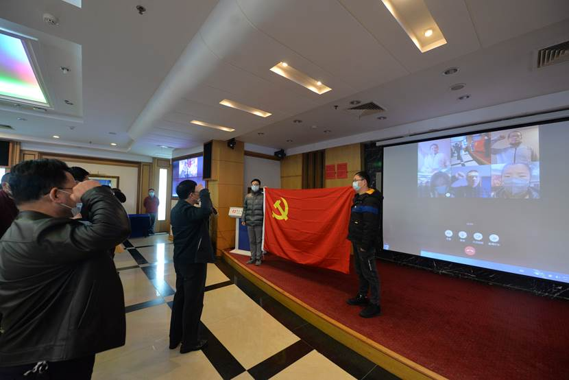 “我志愿加入中国共产党,拥护党的纲领,遵循党的章程……随时准备为党和人民牺牲一切,永不叛党。”3月10日,一场特殊的宣誓仪式在医院举行,杨勇、曹理言、丁宁、刘群4位同志通过视频连线面向党旗庄严宣誓,光荣的加入中国共产党。23日,在武汉金银潭医院,龙勇、张雯和李晓三位同志经火线考察、批准,成为在抗疫最前线加入组织的新鲜血液。