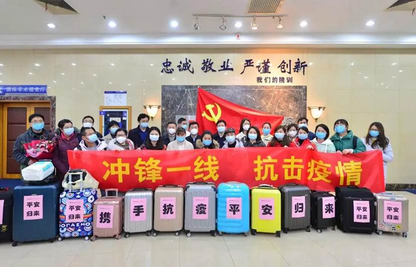 “我志愿加入医院抗击新冠肺炎医护救援队,立足本职,勇往直前,关爱生命,敬业奉献,同心协力,战胜困难,坚决打赢防治新冠肺炎攻坚战。”1月27日7:50,在院党委统一部署下,90余名医务人员代表面向党旗庄严宣誓。截止当日9:00,共收到700余位医务人员志愿支援前线的报名申请。大家用实际行动扛起党员和医者的使命担当,铮铮誓言响彻战疫一线。