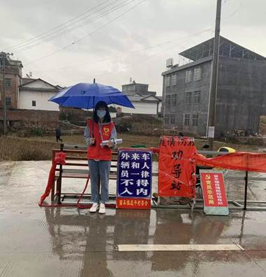 Ø 陈虹,系我校继续教育学院19级会计班学生,2020年2月10日在江西省赣州市寻乌县留车镇庄干村开启了新年的第一次志愿服务。刚开始父母并不同意她去参加这次的志愿服务活动,在她的软磨硬泡下,父母最终妥协。当她听到路过行人的“辛苦了”,看到感谢的眼神,她觉得一切都是那么值得。她表示,非典时期是别人守护我们,现在我们守护整个世界。