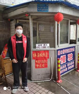 Ø 李文涛,系我校继续教育学院学生会文娱部副部长、18级汽车检测与维修技术班学生。在抗击疫情的大潮中,他果断加入梅州市五华县水寨镇府前居委会志愿服务工作。在和一位六十余岁的老党员聊天的过程中,老党员对党对国家对政府的信心,以及言行上的坚定与执着深深感染了他。他自觉身体力行,坚持每天总是第一来,最后一个走。他表示,没有一个冬天不可逾越,没有一个春天不会来临。