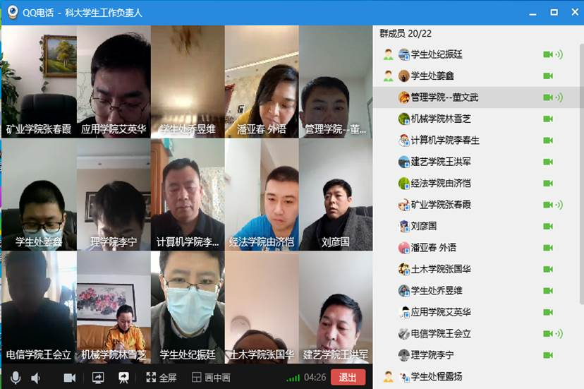 3月22日,为响应教育部思想政治工作司安排,统筹推进疫情防控工作,学生工作处(部)组织全校辅导员参加“共抗疫情显担当,爱国力行育新人”全国高校辅导员网络培训示范班,引导全校辅导员深刻认识疫情防控背景下加强思想政治工作的重要性及紧迫性,系统掌握特殊时期青年学生思想特点和行为特征,切实加强政治领导、思想引导、情感疏导、学习疏导、行为指导、就业指导,增强新形势下做好学生思想政治教育工作的能力,更好地担负起面向青年学生开展爱国主义教育、制度自信教育、社会主义核心价值观教育等责任和使命,把立德树人根本任务落细落实落到位,全面推进疫情防控期间思想教育工作和学风建设。