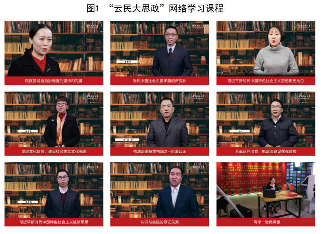 四是打造“24小时全域全程”思想政治教育云平台。与 科大讯飞党组织合作,建成“云民大思政智慧教学平台”, 实现思想政治理论课教、学、管、测、评一体化。疫情期间做到了“停课不停教、不停学”,没有让学生落下一节思政 课。完成了教育部项目“基于互联网的A.I.思政课考试创新 模式探索”、“基于社交网络的混合式教学”。获得教育部 全国高校思想政治理论课教学展示活动一等奖。录制了《党 章》《中国共产党纪律处分条例》《中国共产党廉洁自律准 则》《习近平视察云南重要讲话精神》《民族团结的礼赞》 等10余个精品党课。