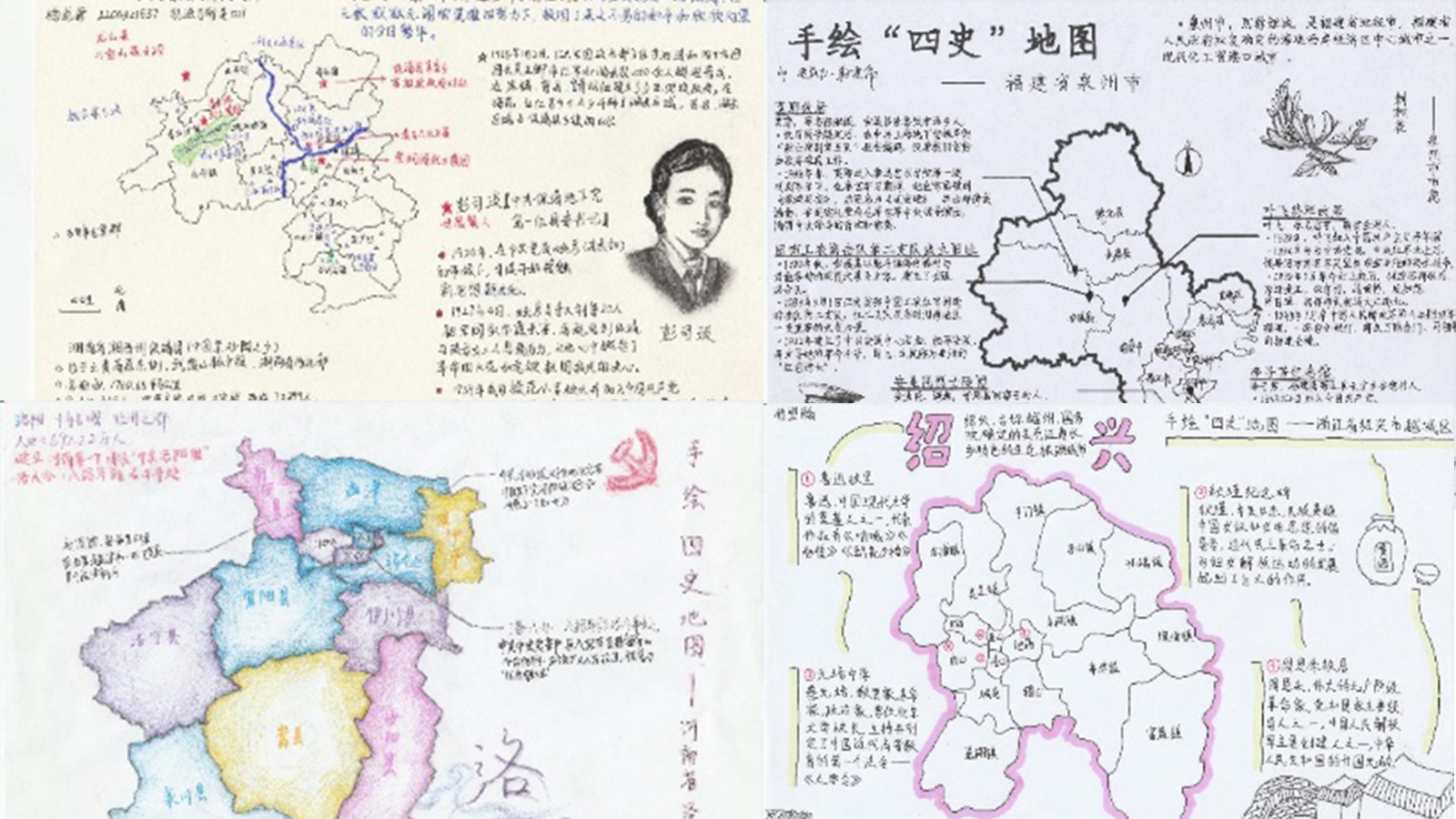 积极分子、党员“手绘四史地图”参观家乡红色基地,了解家乡英烈故事,梳理家乡发展历史,绘制家乡四史地图。